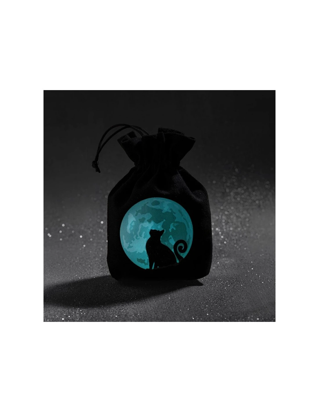 The print on this pouch shows an anonymous cat singing its serenade in the moonlight. And it’s a special one: the moon, yellowish during the day, glows blue in the dark! After charging it with UV light beforehand, of course. All in all, this pouch is a great choice to carry around your CATS Dice Sets, and it’s perfectly capable of storing any other dice you like.