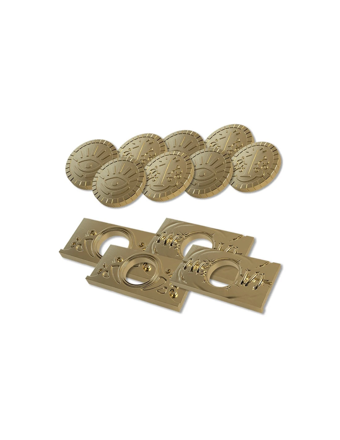 Upgrade the plastic coins and the cardboard Scar tokens included in a single game box with gorgeous metal counterparts!