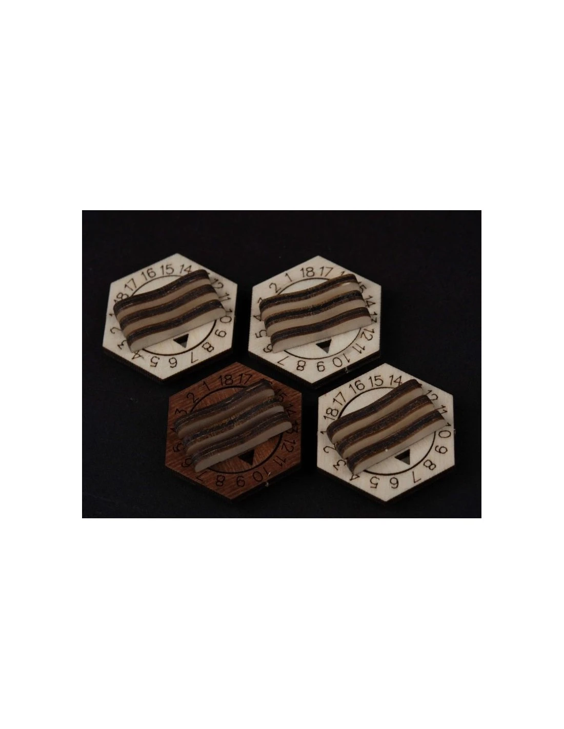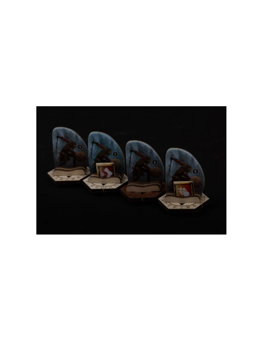 This set containing 20 bases will hold the monsters for you. They also have a counter on the base, so you can set it as you play, no need to refer to the monster stat cards for damage. Natural color for normal monsters and stained for the elite monsters. They also have space for two status tokens. They fit perfectly to the hex size of the map tiles.