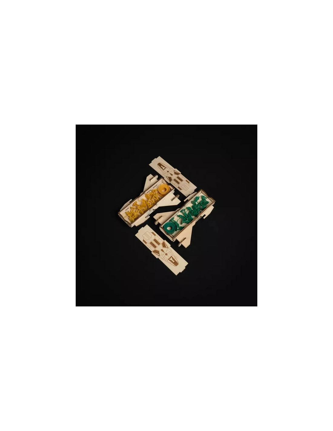 – 4 spaceship-shaped boxes for player components