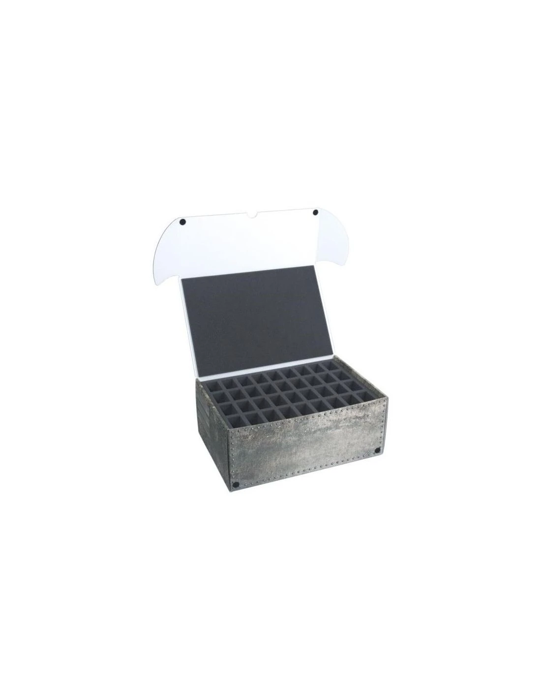 - 1 x 6mm thick foam layer adhered to the inside lid protecting the top of the miniatures;