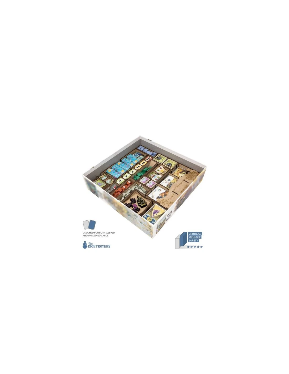Size of assembled organizer: 28.3 x 28.3 x 6.6 cm – Important: Due to manufacturing, printing, and edition differences, box sizes can vary and may not be compatible with the version our products were designed for. Please measure the bottom inside of your game box to confirm fit for the organizer dimensions listed above.