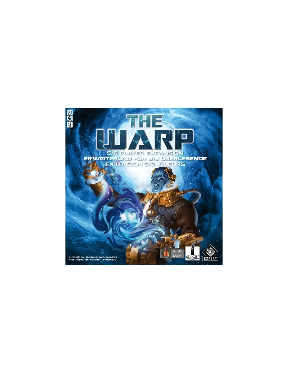You can now enjoy even more epic games of The Warp by adding up to 2 extra players! The expansions adds all components for a fifth and sixth player. This way you can enjoy a fully competitive game with 5 or 6 players or you can play the 2 vs 2 vs 2 team mode.