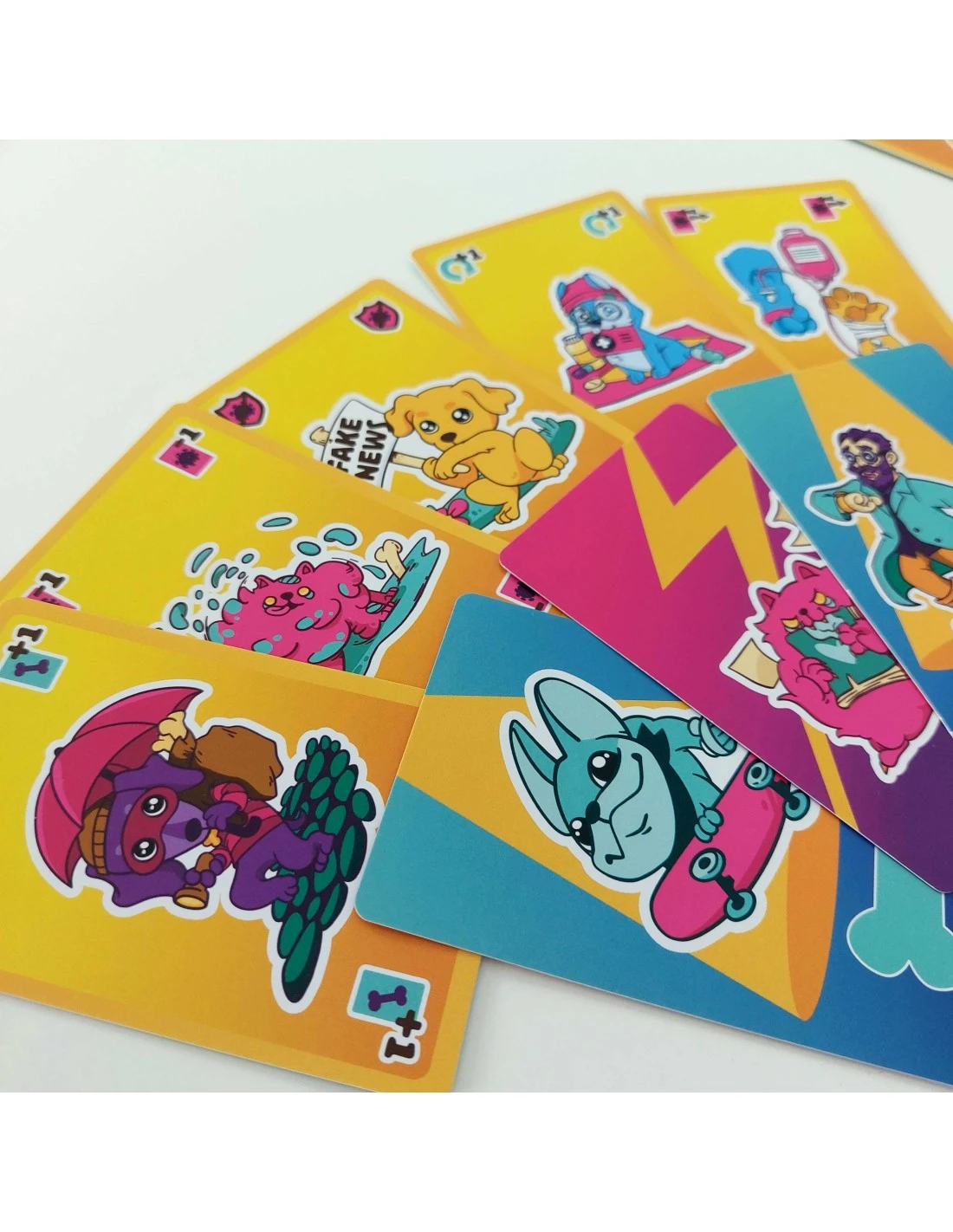 You can play this dynamic card game with 2-5 players, regardless of their language. Zombie Puppies can be learned in 5-10 minutes, requires strategic thinking, and gives you a whole new card game experience.
